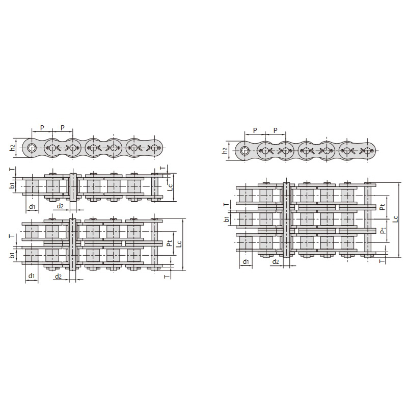 Tableau technique des chaînes à rouleaux de précision à pas court de la série A à goupilles fendues