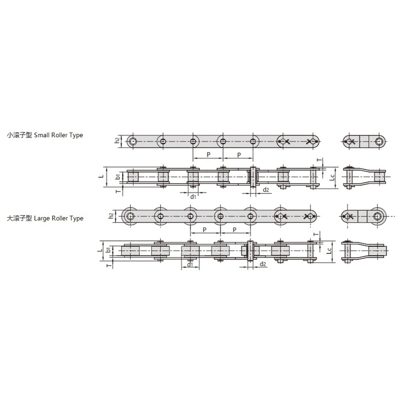 - Pas accru: Le pas est deux fois plus grand que celui des chaînes standard, ce qui améliore la répartition des contraintes et prolonge la durée de vie de la chaîne.