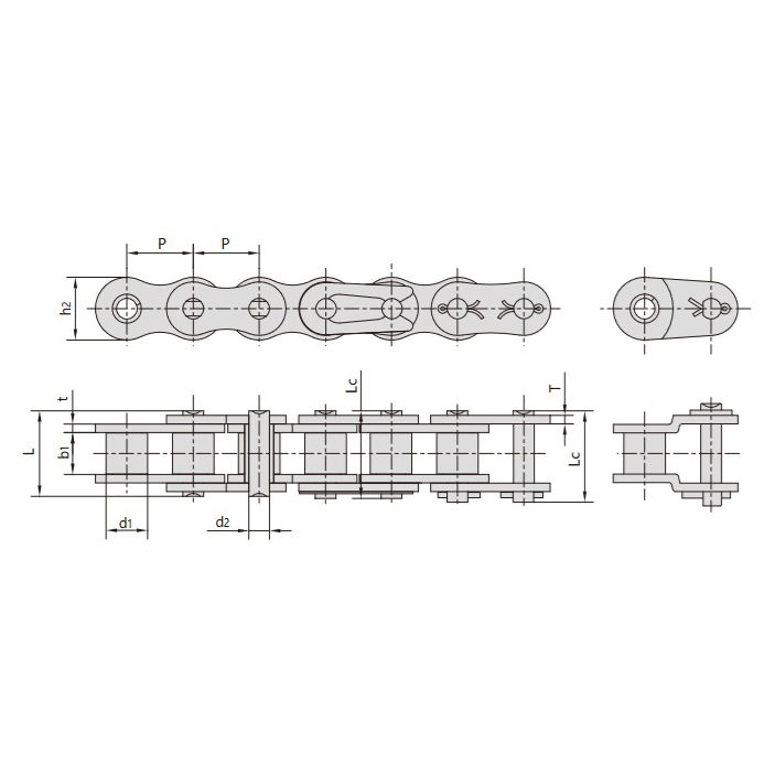- Dimensions standardisées: Partage les dimensions paramétriques des chaînes à rouleaux de la série Heavy Duty, garantissant des performances et une compatibilité constantes lors des mises à niveau ou des remplacements.