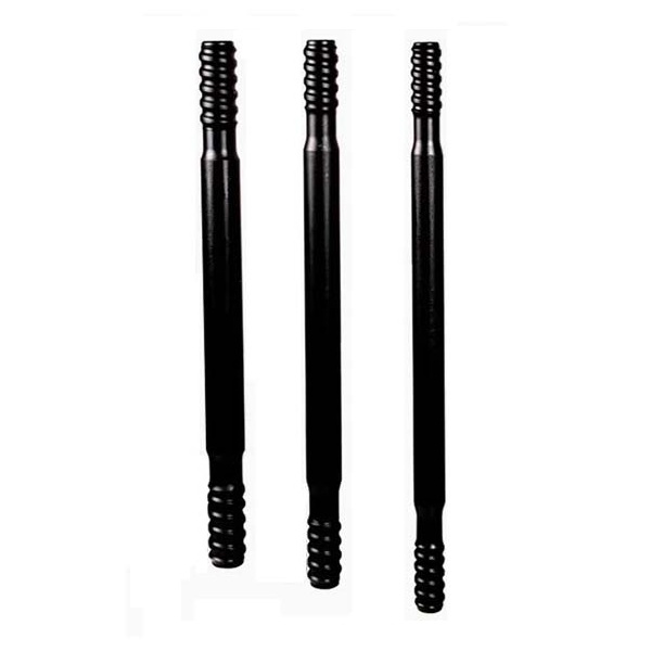 La tige d’extension ronde transmet la puissance du piston du marteau perforateur à la roche. Une extrémité de la tige est reliée à un manchon d’accouplement ou à un adaptateur de tige, et l’autre extrémité est reliée à une tige de forage filetée.