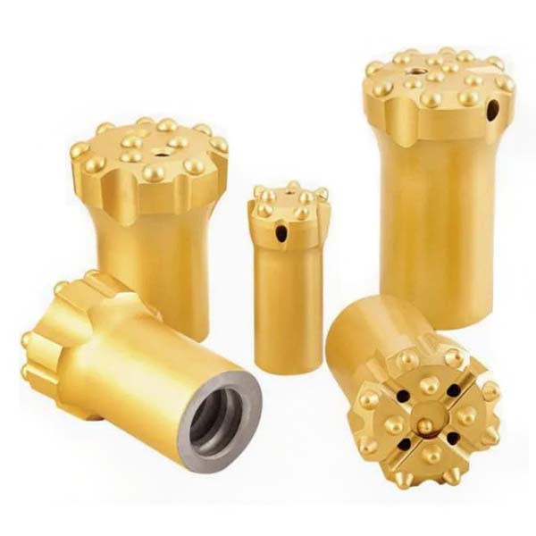 Le trépan à boutons filetés est un trépan indépendant et remplaçable qui se connecte à diverses tiges de forage ou adaptateurs de tige grâce à son filetage standard situé à l’extrémité arrière. La tête du trépan est composée de multiples boutons sphériques en carbure de tungstène, disposés de manière uniforme à la surface du trépan.